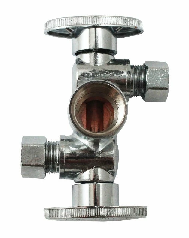 - Chrome plated dual handle- dual shut off quarter turn valve